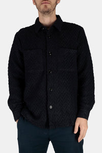 - Portuguese Flannel Knited Herringbone Overshirt Shirt (Navy)